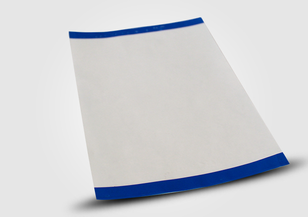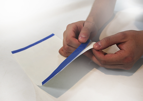 Fitas nas extremidades para facilitar o destaque do adesivo